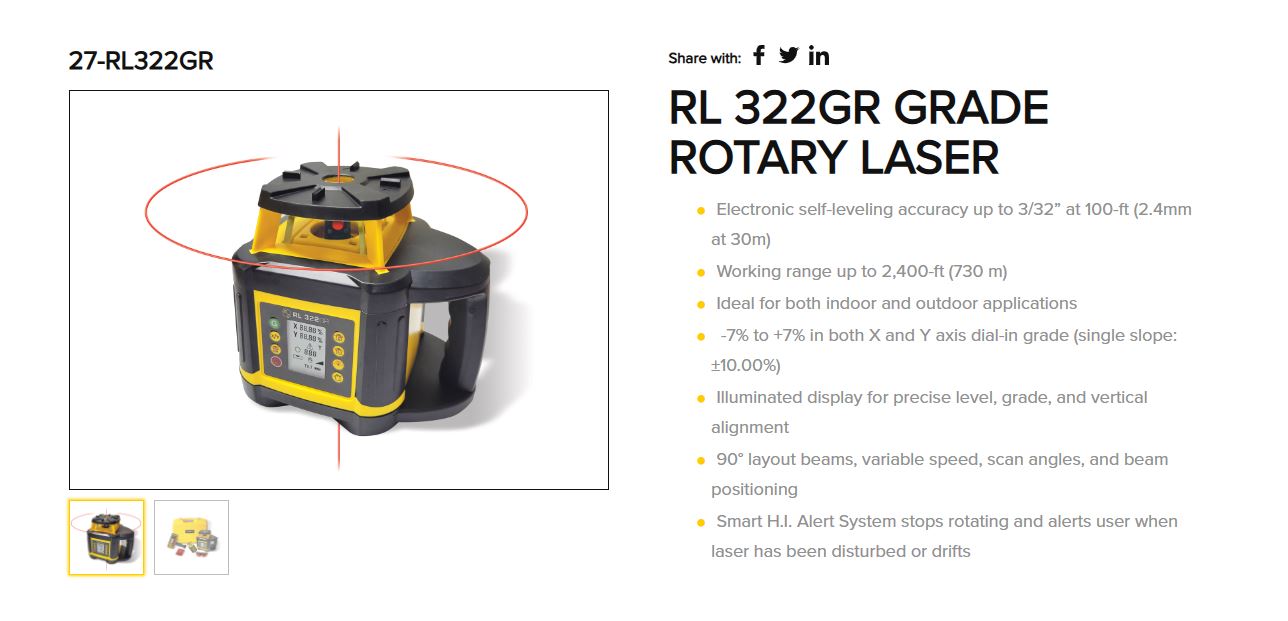 Site Pro RL 322GR Dual Grade Laser Price - Only $1,795.00
